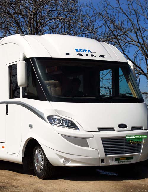 Il frontale, in particolare, è realizzato sfruttando due differenti livelli: un primo, strutturale, solidale alla base meccanica e alle pareti laterali, e un secondo, estetico e funzionale, posizionato a copertura del primo per modellare le forme e, conseguentemente, l’aspetto. Si tratta della stessa tecnologia già provata, da anni, nel settore automobilistico che Laika sceglie di applicare, tra i primi in assoluto, ai veicoli ricreazionali a progettazione integrale. Una costruzione di questo tipo, chiaramente, è più complessa rispetto a una di tipo tradizionale composta da un frontale monoblocco, ma offre diversi vantaggi, con la possibilità, in caso di necessità, di interventi limitati alle componenti interessate e una estrema facilità di sostituzione dei vari elementi.