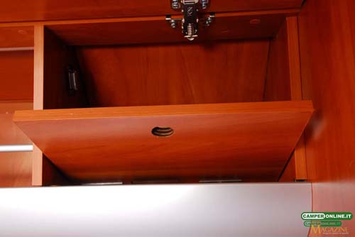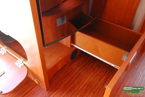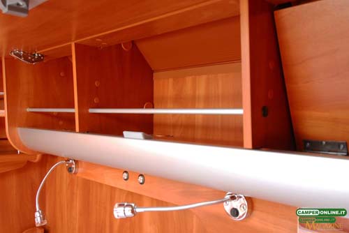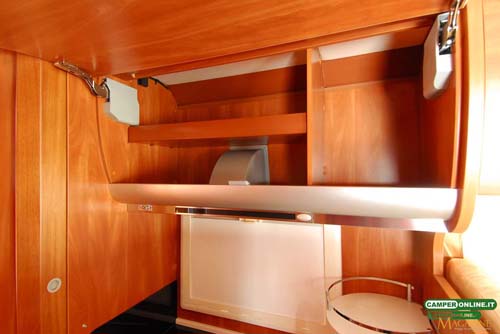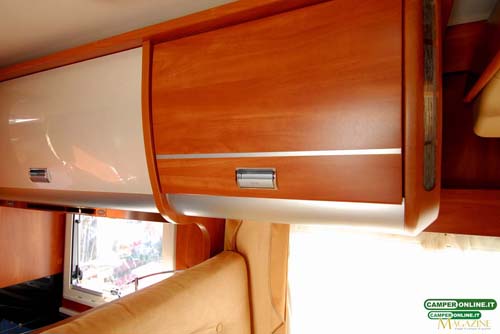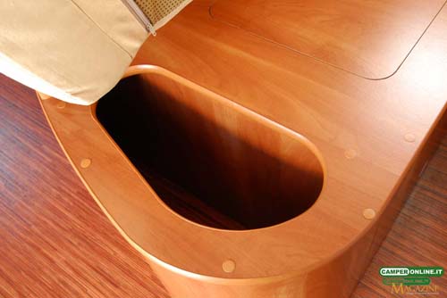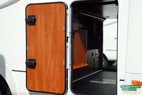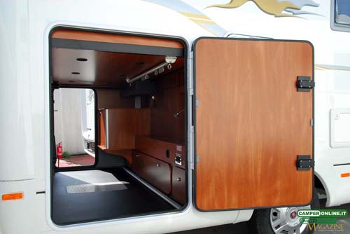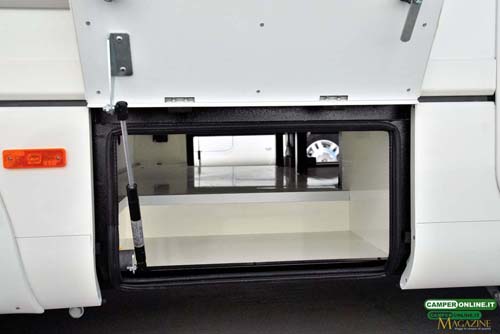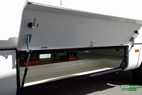 Il gavone passante contenuto nel doppio pavimento è ampio, in grado di offrire un volume abbondante, ed è accessibile anche dall’interno attraverso una botola situata nei pressi del living. Proprio a causa della sua ampiezza, però, gli oggetti contenuti rischiano di avere una sistemazione poco stabile e di non essere facilmente reperibili dall’interno del veicolo. Inoltre, la coibentazione dei portelli laterali potrebbe essere migliorata.
