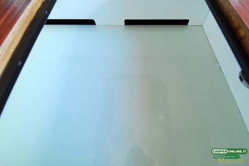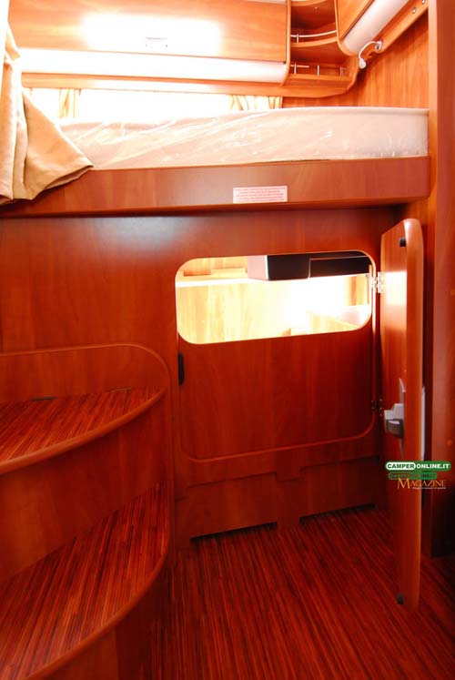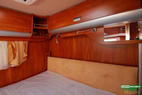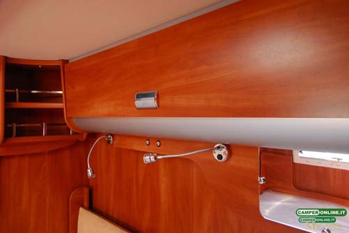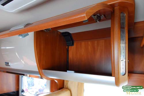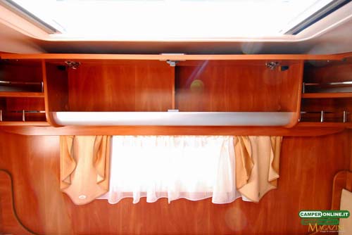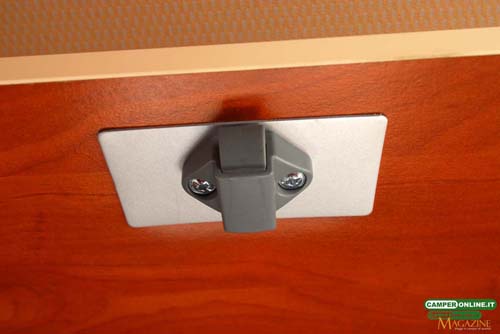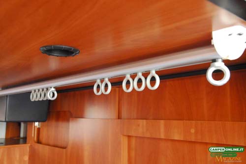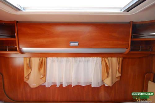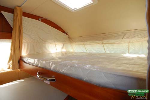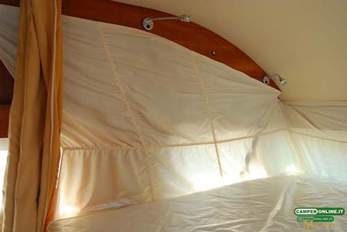 La tenda prevista per garantire la privacy agli occupanti del basculante è del tipo con canalina di scorrimento a tetto, mentre sarebbe preferibile il suo richiamo automatico con la chiusura del letto, inoltre, il sistema di bloccaggio del letto prevede un solo aggancio dal lato destro.