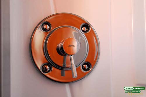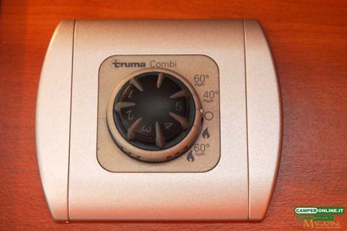 Il pannello di comando dell’impianto Truma, e la sonda termostatica dedicata, sono posizionati sopra alla porta di ingresso: viceversa, l’interruttore dello scambiatore di calore si trova sul cruscotto.