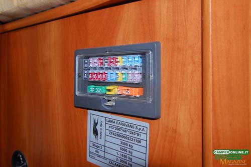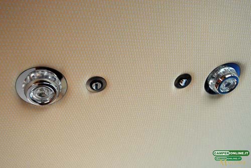 Sempre a livello di impiantistica elettrica, è da notare come il veicolo sia provvisto di antifurto perimetrale e volumetrico di serie e che i portelli del garage e il gradino esterno sono dotati di sensori di apertura con spia acustica e visuale a cruscotto.
