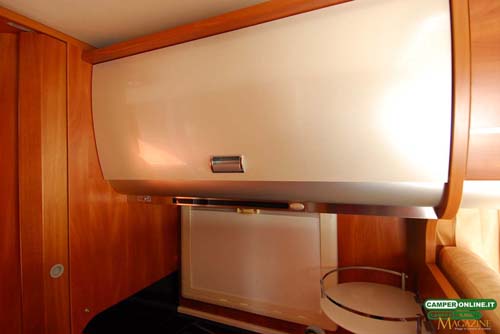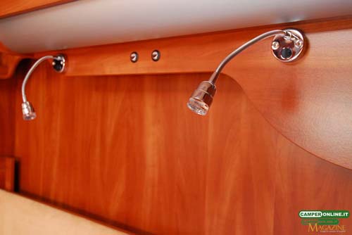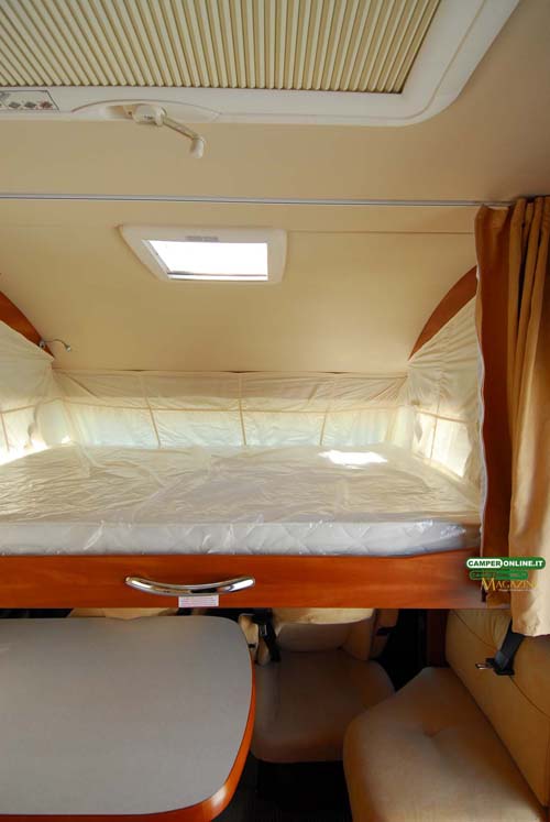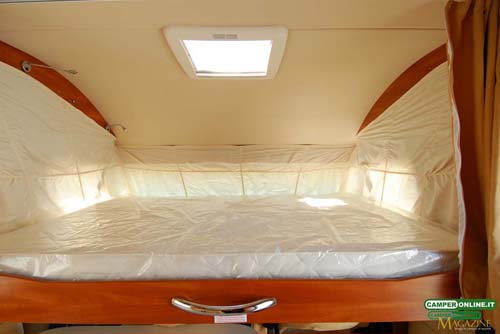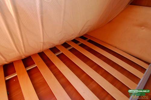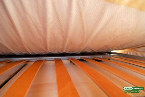 Sempre il basculante è disponibile con movimentazione elettrica, mentre per quanto riguarda il letto posteriore è da segnalare come questo sia riscaldato sia sul perimetro che nell’intercapedine tra rete a doghe e materasso.
