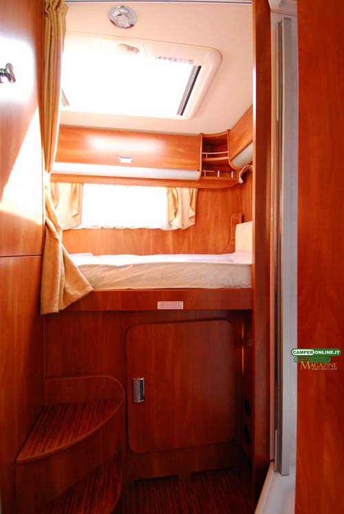 Non manca, poi, il rivestimento del soffitto tramite lo speciale materiale imbottito e isolante Iso De Luxe, mentre per quanto riguarda i letti, il Kreos 6010 può contare su reti a doghe e speciali materassi Laika Sleeping System ad alta densità con uno spessore da 13 cm.
