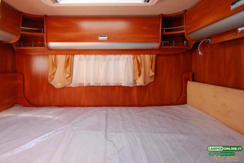 | Letti Matrimoniale posteriore comodo e ben allestito dotato di sistema di regolazione elettrica dell’altezza (Optional). Basculante anteriore molto largo e ulteriormente estensibile in opzione. Allestimento di alto livello, cielo utile corretto. Ambientazione sempre curata. |