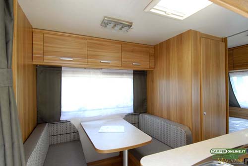 Inoltre, i materassi adottano un rivestimento antiacaro, l’illuminazione è stata rivista e la cucina vede la presenza di un rubinetto dell’acqua di nuovo design e di un nuovo portaspezie. Le tende sono in tessuto microfibra e i laminati sono di colore beige con venatura; i tessuti delle tappezzerie sono proposti in 4 varianti e i pacchetti di optional sono 3.