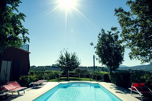 La vista spazia dalla campagna coltivata alle colline circostanti, dove si stagliano le inconfondibili torri di San Marino, mentre il poggio orientato a nord-est nasconde il vicino mare e la sua caotica riviera.