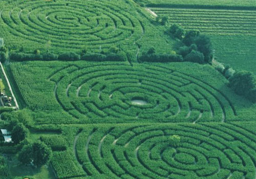 Si tratta del Labirinto Effimero, uno dei più grandi d’Europa con i suoi 70.000 mq di superficie e 3 chilometri di sentieri, che da qualche anno a questa parte ha acquisito anche la connotazione di “dinamico”, che lo rende l’unico al Mondo per dimensioni.