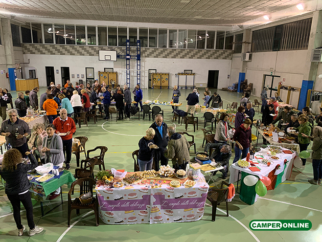Alle ore 20:00, all’interno dell’accogliente padiglione polivalente generosamente messo a disposizione dal Comune, prende il via il secondo e atteso appuntamento della giornata: l’Apericena. Una kermesse straordinaria per l’accurata esposizione di piatti e vini in omaggio alla zona o alla regione di provenienza dei singoli equipaggi, che sorprende ogni volta per l’impegno e l’entusiasmo dei partecipanti nel coinvolgere anche con descrizioni e aneddoti i “giudici” e, successivamente, gli impazienti astanti nella degustazione delle numerose prelibatezze.