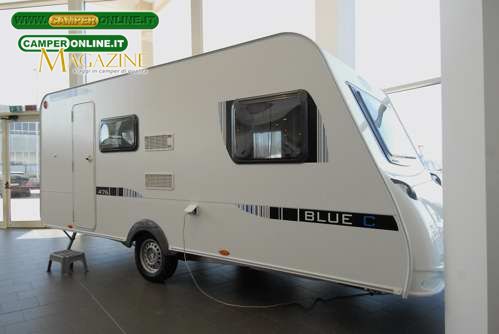 Operazione commerciale di primavera in casa Caravelair, con il lancio di una gamma entry level. La nuova gamma di caravan si chiama Blue C ed è declinata al momento in due varianti contraddistinte all’esterno da una moderna grafica che richiama i codici a barre e all’interno dall’assenza della stufa e del piatto doccia, nonché da mobili di più semplice fattura. Il tetto è con rivestimento antigrandine e la finestra anteriore è di serie.