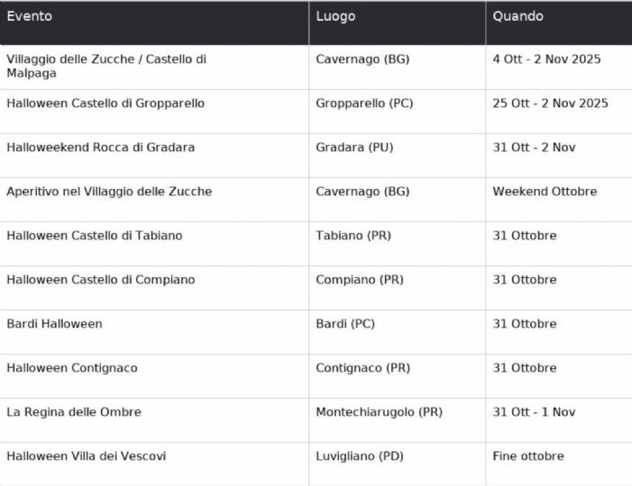 Le dieci proposte consigliate agli amanti della vita in camper su come trascorrere la serata di Halloween e il fine settimana, vertono principalmente su iniziative ed eventi che si svolgono in un castello o in una villa storica: location perfette per le tipiche ambientazioni gotiche in cui si mescolano oscurità e soprannaturale.