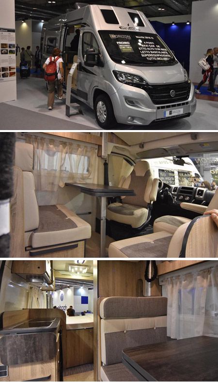 Tra le novità 2016, Font Vendôme propone il nuovo il nuovo modello Horizon H307. Allestito su Fiat Ducato furgonato da 599 cm, dotato di tetto superalto H3, propone un letto matrimoniale posteriore trasversale sollevabile per una maggiore capacità di stivaggio e un letto anteriore basculante, azionabile elettricamente. La cucina è lineare e la toilette è dotata di una comoda doccia con pedana in legno e di lavabo girevole per ottimizzare lo spazio.