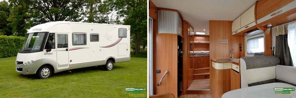 Per i motorhome la parte del leone tocca al 903DF, veicolo di 6 metri con doppio pavimento tecnico per l'impiantistica, matrimoniale trasversale regolabile in altezza su garage, consueto matrimoniale basculante in cabina.