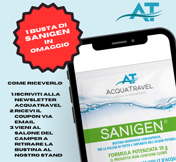 Una volta compilato il form, si riceverà via e-mail il coupon per ritirare l’omaggio, recandosi allo stand Acquatravel durante il periodo di apertura del Salone del Camper 2024.