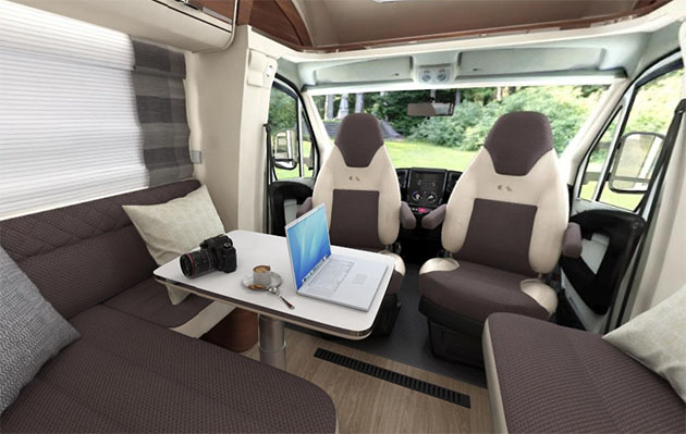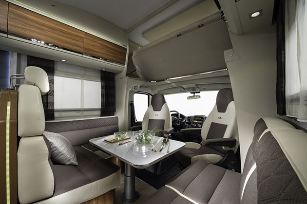 Compact SLS, che offre, in una lunghezza inferiore ai sei metri, e una larghezza limitata a 212 cm, una zona notte con letti gemelli grazie alla parete estensibile in coda.