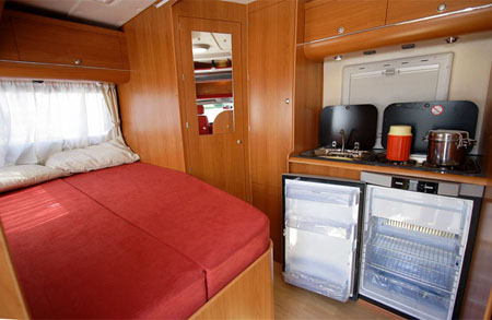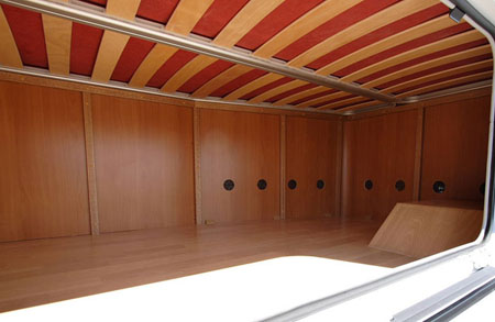 Si tratta di un profilato 635 cm di lunghezza allestito sul nuovo Renault Master Euro5 con motore 2.3 dci da 125 o 150 cv e caratterizzato dall'ormai classica monoscocca in vetroresina dell'apprezzata gamma Projet. L'interno, capace di offrire 5 posti letto, prevede un living anteriore con semidinette e divanetto contrapposto, ingresso centrale opposto al blocco cucina e, in coda, armadio guardaroba e toilette con doccia separata sul lato sinistro e letto matrimoniale longitudinale su quello destro. Da notare, nella zona anteriore, la presenza di un letto singolo trasversale ribaltabile.