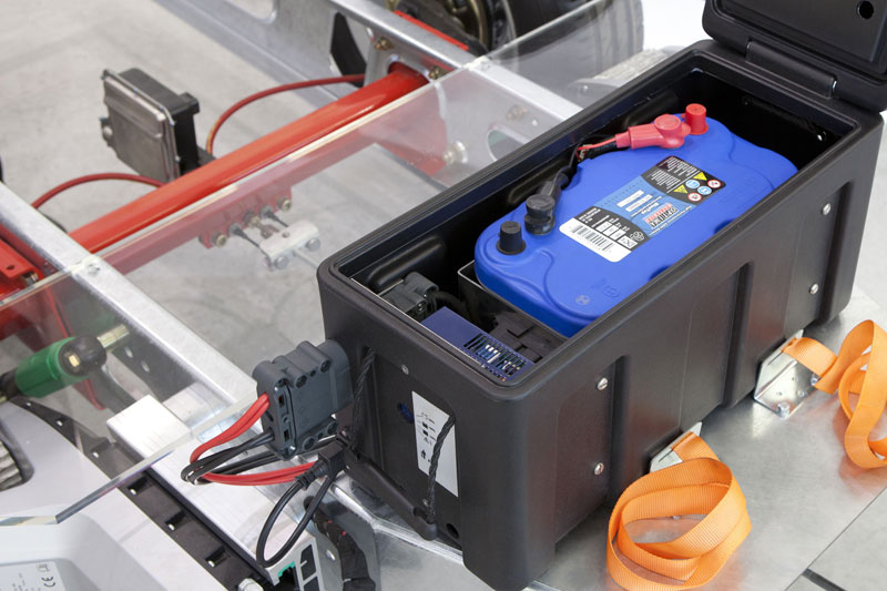 Powerpack è composto da un caricabatterie abbinato alla batteria di alta qualità MAMMUT AMS Optima, alloggiati in un’apposita scatola comprensiva di cinghia e di solide staffe di montaggio per una facile installazione. In questo caso, il prodotto colpisce per la sua soluzione semplice plug and play. I componenti vengono assemblati perfettamente come in un blocco unico. La robusta scatola fornisce una protezione perfetta per i componenti alloggiati al suo interno. Inoltre, la scatola può essere facilmente rimossa e trasportata. In inverno si potrà trasportare la scatola, grazie alle sue comode maniglie, in casa o in garage e provvedere al mantenimento della batteria collegando alla corrente il caricabatterie integrato.