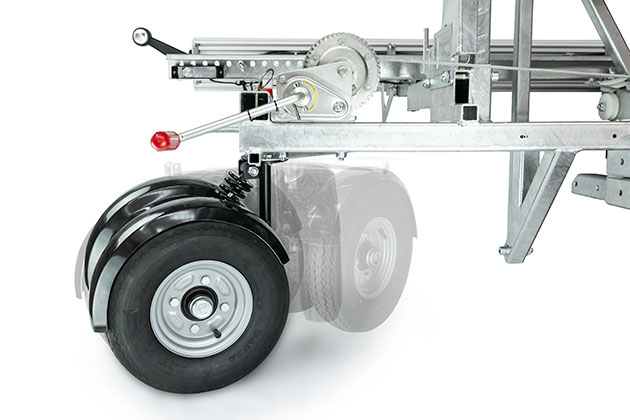Le ruote sono fisse in marcia per dare la massima stabilità, mentre in manovra possono essere sbloccate, diventando pivottanti e sterzanti, facilitando così le manovre più difficili, grazie anche a uno speciale attacco che rende il rimorchio solidale al mezzo.