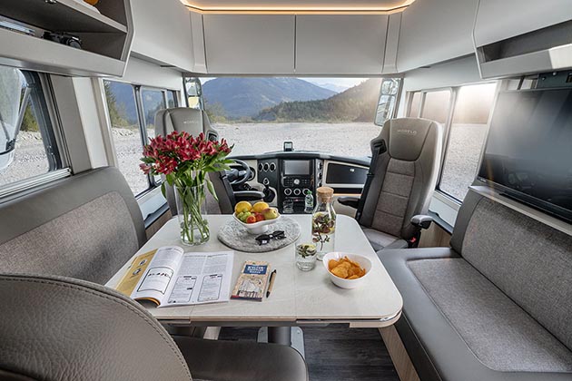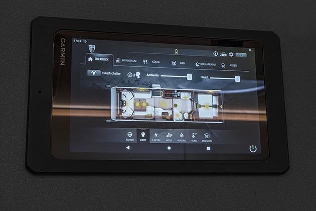 - Nuovo sistema Morelo Connect per il controllo completamente digitale tramite pannello touch-screen o app di illuminazione, dispositivi multimediali, sensori (ad esempio il livello dei serbatoi), attuatori (come l’azionamento del letto basculante elettrico). Un sistema provvisto anche di un comodo e intuitivo comando vocale.