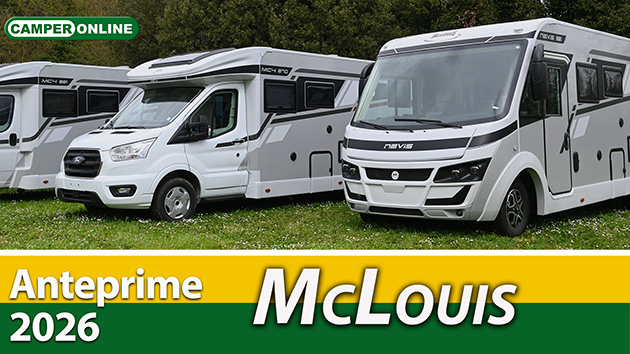 La stagione 2026 segna l'arrivo in casa McLouis della nuova generazione della gamma di motorhome Nevis, un profondo restyling all'insegna dell'eleganza e della modernità. Nuovo look anche per i semintegrali Mc4 Serie 800, mentre migliorie estetiche e funzionali hanno interessato la gamma d'accesso dei van Menfys.
