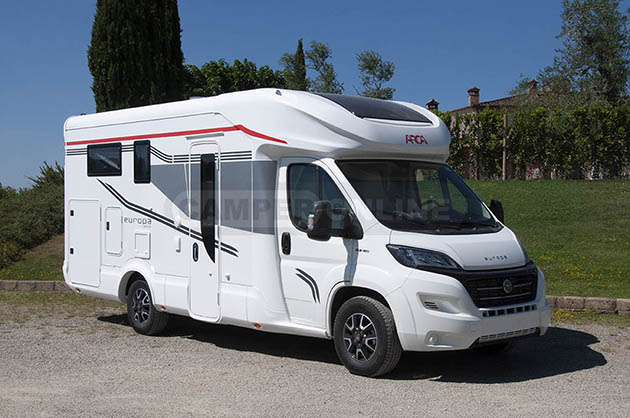 Europa M 699 GLM, con letti gemelli posteriori e dimensioni inferiori ai 7 metri.