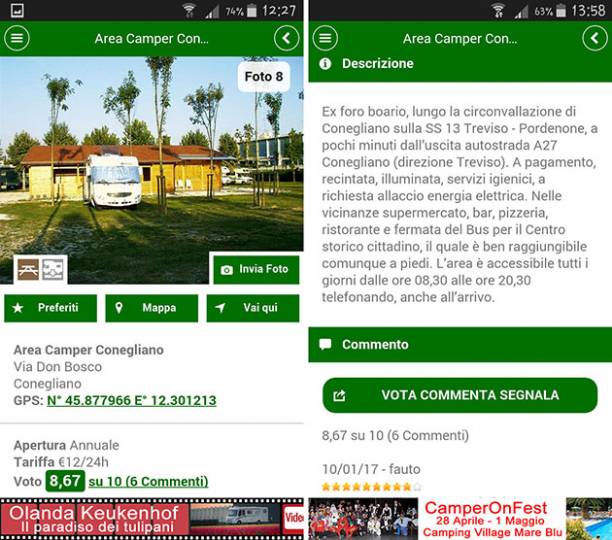 Uno strumento completamente gratuito, compatibile con i sistemi operativi Android, Apple IOS e Microsoft, che mette nel palmo della mano degli interessati il formidabile insieme di dati che la community ha scelto di condividere: una raccolta di oltre 60.000 segnalazioni, tra foto e commenti, che possono essere consultate in tempo reale e permettono una scelta consapevole e ponderata, basata su testimonianze reali di colleghi camperisti.