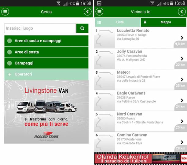 applicazione per terminali mobili che consente la ricerca e la localizzazione di aree attrezzate, camper service, punti sosta, agriturismo con sosta camper e campeggi: tutte le informazioni fondamentali per chi viaggia in camper.