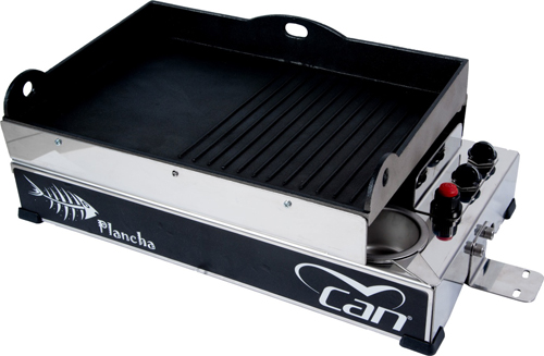 Plancha, pensata anche per l’uso nautico, può essere dotata in optional di supporti per l’ancoraggio ai corrimano. Con questo nuovo prodotto, Can completa la sua gamma di sistemi portatili per cucinare composta dai compatti fornelli ad alcool “Charlie”, dal barbecue a gas BBQ 2989 e dalla piastra elettrica con superficie in vetroceramica “Thundergrill”.