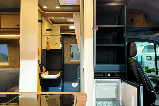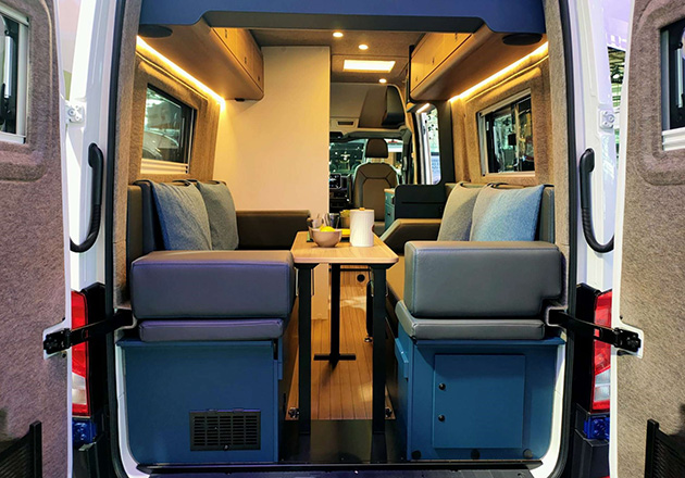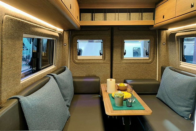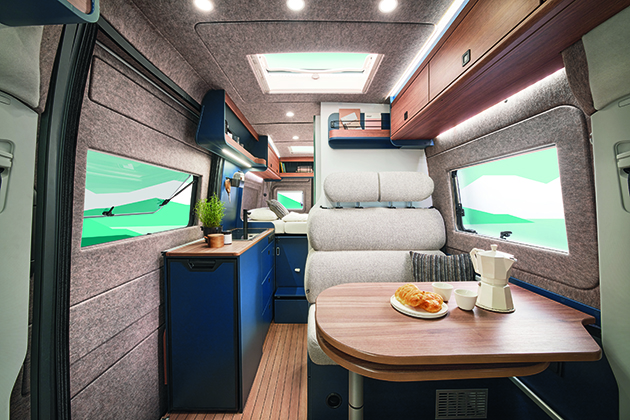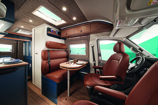 Gli interni sono completati da un concetto di illuminazione che prevede una combinazione di luce diretta e indiretta. È possibile cambiare l'atmosfera all'interno del veicolo regolando l'illuminazione. Nel pavimento sono ricavati pratici vani. La zona cucina presenta un piano di lavoro aggiuntivo estraibile e un frigorifero a compressore da 90 litri facile da usare grazie al sistema di apertura a cassetto.