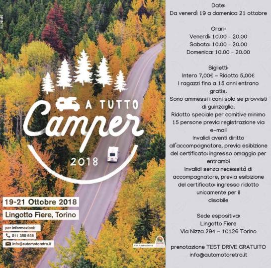 in occasione della manifestazione A TUTTO CAMPER (Lingotto Fiere – ingresso pad 3)