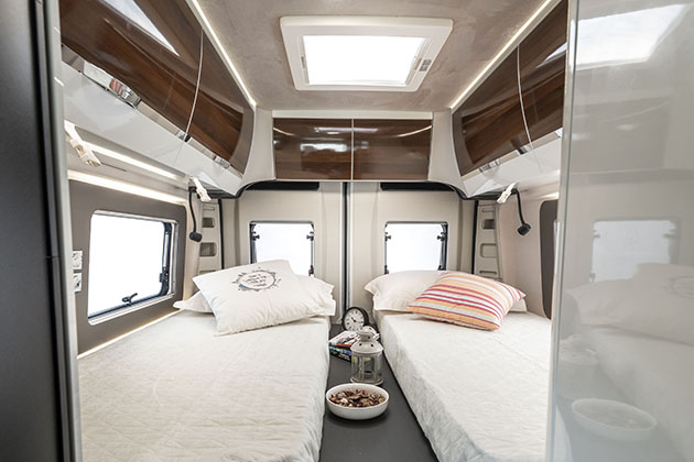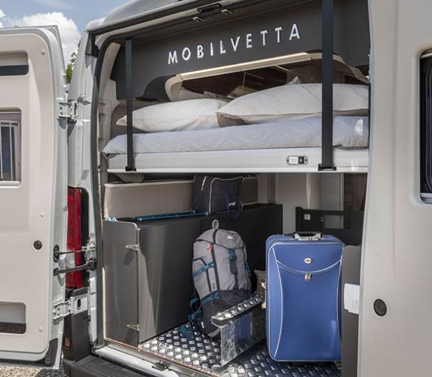 Per chi cerca invece un van di alta gamma, sono proposti due modelli Mobilvetta, ovvero l’Admiral 6.3 e l’Admiral 6.5, quest’ultimo dotato di letto basculante posteriore in grado di creare un vano di carico a volume variabile, anche di generose dimensioni.