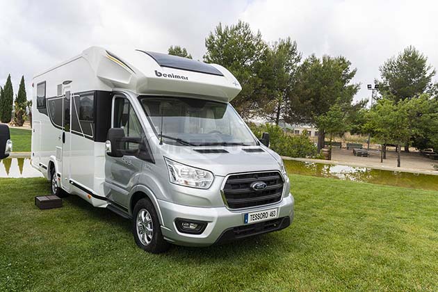 Tessoro su meccanica Ford Transit, in particolare con i modelli 440 e 463 UP, contraddistinti da un equipaggiamento di serie “pronti a partire”, e oltre che dal classico Tessoro 442 con letto trasversale e gavone garage, e del Tessoro 463 con letti gemelli in versione