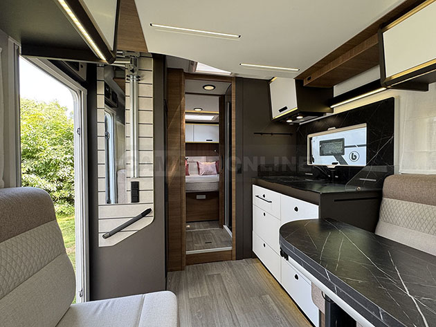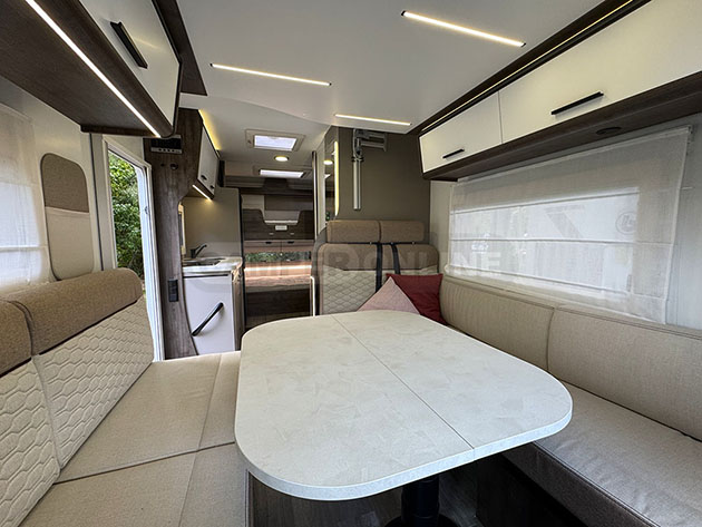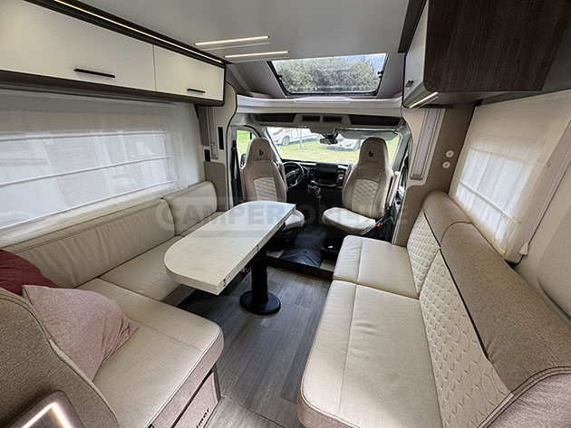 Benimar di gamma più elevata, come i semintegrali Mileo e i motorhome Amphitryon, caratterizzati da un design dell’arredo moderno ed elegante.