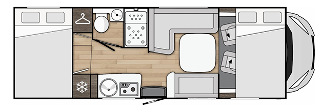 61.990 euro: è un semintegrale di soli 630 cm di lunghezza, ma in grado di offrire un letto matrimoniale posteriore, un bagno con doccia separata in nicchia, un generoso frigorifero in cucina e uno spazioso garage. La dotazione è davvero completa: motore da 165 CV, sensori di parcheggio, veranda, pannello solare da 200 W, oscuranti cabina plissettati, apparecchio TV da 20” e antenna TV (cambio automatico optional, ordinabile solo durante l’evento).