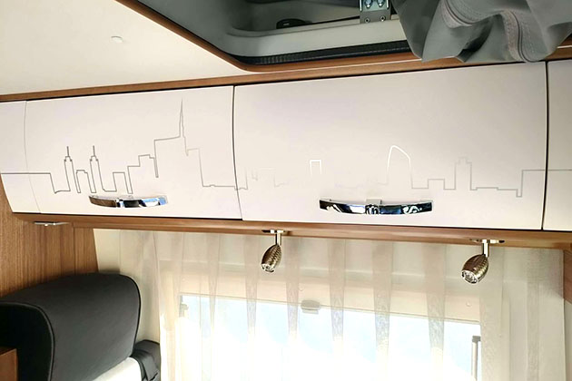 Numerose le possibilità di personalizzazione, sia esterne che interne. Oltre a cerchi in lega particolari e verniciature fuori dall’ordinario, è possibile avere, sia sui pensili interni, sia sulla fiancata esterna, un decoro stilizzato che