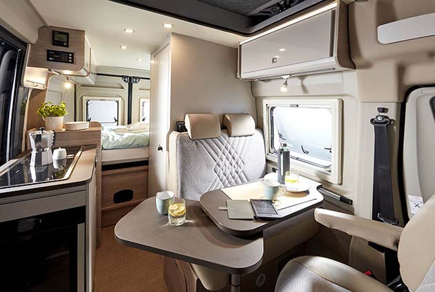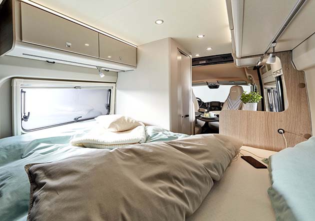 C 540, cioè sul furgonato Citroën Jumper con lunghezza di 541 cm e classica disposizione interna con letto matrimoniale trasversale in coda e tetto a soffietto opzionale.