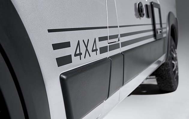 In aggiunta è possibile installare il “pacchetto off-road“ che include il bloccaggio del differenziale posteriore, una protezione per il serbatoio del carburante e per il catalizzatore SCR e un upgrade ulteriore che prevede sospensione posteriore con balestre a tre lame, pneumatici da 16“ BF Goodrich All-Terrain, carreggiata allargata e rialzo del telaio di 22 mm nella parte anteriore e di 60 mm nella parte posteriore, come anche il blocco che permette il coinvolgimento singolo e mirato delle ruote.