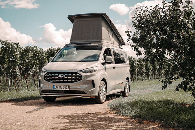 Ford Tourneo Custom V710. Entrambi gli allestimenti precedenti, C 500 e C 530, sono stati adattati al nuovo telaio e importanti dettagli sono stati ulteriormente sviluppati. Il layout flessibile del Copa C 500 si trasforma senza sforzo da un veicolo di tutti i giorni in un camper, ma può anche essere utilizzato per trasportare sei persone o oggetti ingombranti. Il divanetto posteriore si trasforma in un letto e può essere spostato per consentire l'inserimento di altri due sedili singoli. La soluzione di stivaggio sotto la panca è stata ridisegnata e ora consente di utilizzare lo spazio in modo ancora più efficiente, anche per un facile trasporto di oggetti lunghi come sci o tavole da surf. Il vano portaoggetti posteriore può essere caricato su due livelli.