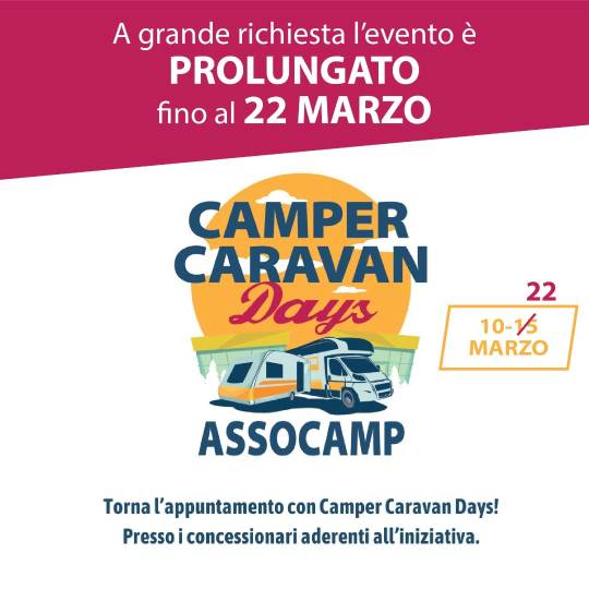 Gli associati ASSOCAMP aspettano tutti gli appassionati da lunedì 10 a sabato 22 marzo per i Camper + Caravan Days. L’elenco completo è disponibile sul sito www.assocamp.com.