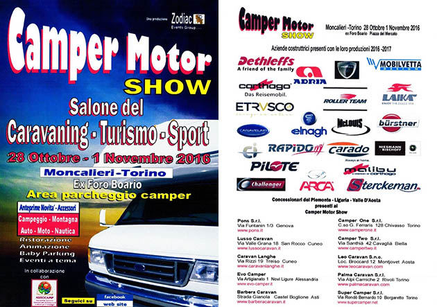Camper Motor Show”, il Salone del Caravaning, del turismo, dello sport. Una occasione per incontrare i Concessionari di Piemonte, Liguria e Val d’Aosta che illustreranno le novità delle collezioni 2017.