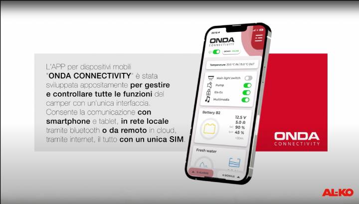 Nel nuovo video, AL-KO VTE mostra esempi concreti delle funzionalità offerte da ONDA Connectivity: dalla possibilità di attivare il riscaldamento o il condizionamento prima di rientrare al camper fino al controllo dei livelli. Ogni funzione è accessibile direttamente dallo smartphone, con widget dedicati che semplificano l’interazione con il sistema.
