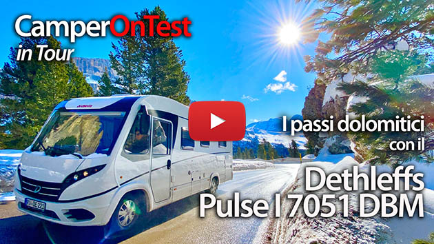 Le montagne innevate più belle d’Europa e un tragitto affascinante che contempla quattro passi dolomitici: è questo lo scenario dove abbiamo voluto ambientare il test del nuovo Dethleffs Pulse I 7051 DBM. Un motorhome moderno che propone un arredo dal particolare ed ergonomico design, caratteristiche dinamiche di tutto rispetto e una costruzione attenta anche alle esigenze di chi fa turismo invernale.