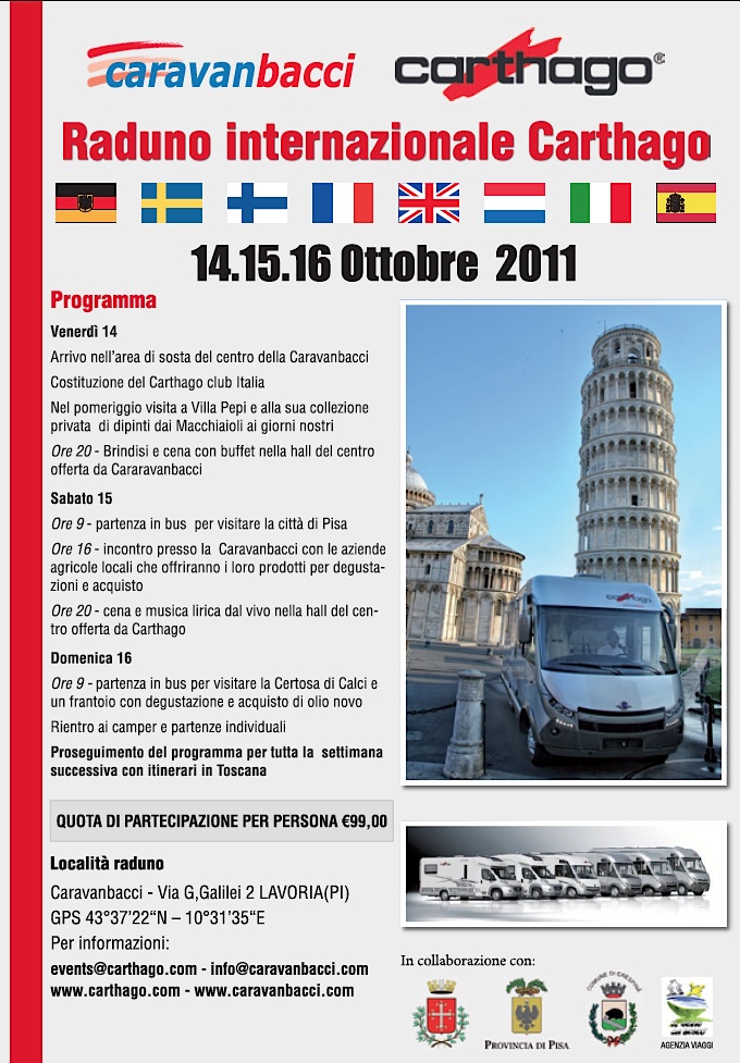 Caravanbacci organizza il Raduno Internazionale Carthago: dal 14 al 16 ottobre,