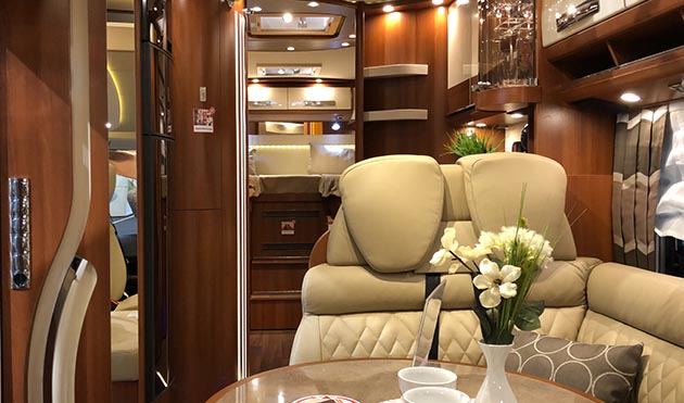 i primi 40 anni della factory tedesca, e brilla, oltre che per una veste esterna personalizzata con verniciatura grigio metallizzata e grafica esclusiva, per una dotazione di serie particolarmente ricca e completa che comprende, tra l’altro, motorizzazione da 177 CV, autoradio doppio DIN con navigatore e retrocamera, tendalino da 5,5 mt, antenna satellitare automatica Teleco, TV LCD 32”, macchina del caffè, inverter 1800 W, wc a cassetta con serbatoio supplementare acque nere da 117 litri, e molti altri accessori. Il tutto per impreziosire ulteriormente un veicolo già di per sé al “top” per quanto riguarda classe e prestigio.