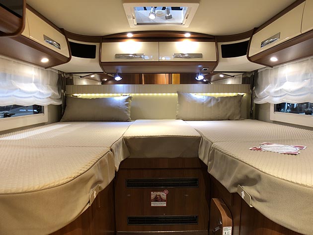 Il Carthago e-line 50 DA LE, lungo 789 cm, è un motorhome allestito su meccanica Fiat Ducato con telaio ribassato AL-KO biasse, e presenta un layout con letti gemelli su grande gavone garage, ampio soggiorno con semidinette, divano e servizi centrali con locali indipendenti per box doccia e zona lavabo WC.