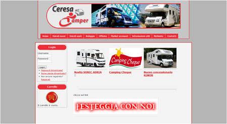 Il mese di festeggiamento, che vedrà susseguirsi diverse e interessanti offerte e iniziative celebrative per ringraziare tutti coloro che hanno scelto Ceresa Camper, inizia con una offerta particolarmente interessante riguardante gli accessori: infatti, coloro che decideranno di iscriversi al sito della concessionaria, raggiungibile all'indirizzo www.ceresacamper.it per ricevere la newsletter della concessionaria milanese o per effettuare acquisti sfruttando l'ampia scelta offerta dal servizio di E-commerce Ceresa Camper, riceveranno un buono sconto di 20 Euro da spendere presso il market accessori.