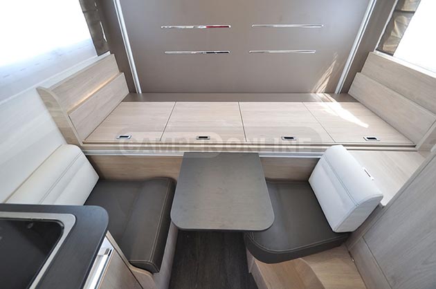 Genesis 274 che riprende ed evolve il concetto del Challenger Quartz presentato all’inizio dell’anno in occasione della Fiera di Parma Turismo & Outdoor, caratterizzato dal presenza di ben due letti basculanti anteriori sovrapposti e una zona posteriore con letto matrimoniale anch’esso sollevabile, seconda dinette per bambini e gavone garage.