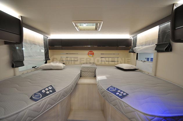 Sirius 2077 GA, che in meno di sette metri propone la zona notte con letti gemelli e la toilette in ambienti separati.