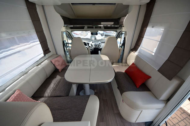 Mageo 288 EB presenta la camera posteriore con letto centrale nautico e la toilette configurata in ambienti indipendenti per zona lavabo/wc e box doccia; l’allestimento si completa con cucina centrale a “L”, frigorifero da 141 litri e soggiorno con semidinette a “L” e sedile laterale. Prezzo finale al cliente:53.990 euro.