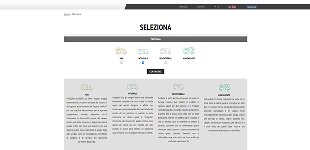 gamma di prodotti del costruttore, suddivisa al suo interno nelle differenti tipologie di veicoli e, a sua volta, nei singoli modelli presenti a catalogo, all’area dedicata ai