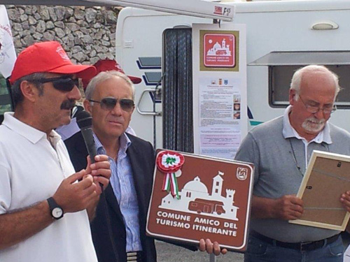 Oltre 70 i camper giunti a Cisternino nei giorni 27, 28 e 29 settembre per il raduno programmato dall’Associazione Brindisincamper, con il patrocinio del Comune di Cisternino, ed organizzato per insignire del titolo di “Comune Amico del Turismo Itinerante”, la bella cittadina pugliese già inserita nel circuito dei “Borghi più belli d’Italia”.Le tre giornate hanno permesso, agli ospiti provenienti dall’Abruzzo, dalla Calabria eda tutte le provincie pugliesi, di godere, grazie anche al bel tempo, lo splendore delle abbaglianti architetture in pietra bianca.La cerimonia di consegna si è svolta presso l’area parcheggio situata in via Francesco Clarizia dove l’Amministrazione Comunale ha approntato il servizio gratuito di carico e scarico per le autocaravan.Sono presenti, in rappresentanza dell’UCA, il coordinatore d’area Gabriele Vertibile, per l’associazione Brindisincamper, il presidente Gianfranco Rotondo e il presidente aggiunto Raffaele Cavallo.A ricevere il riconoscimento, in rappresentanza dell’Amministrazione Comunale, il sindaco dott. Donato Baccaro e l’assessore dott. Vito Loparco, accompagnati dal parroco Don Vanni.In apertura il coordinatore ha salutato i presenti e gli amministratori anche a nome del coordinatore nazionale Ivan Perriera, impossibilitato a partecipare per improcrastinabili impegni di lavoro, e ringraziato quanti hanno profuso impegno per la riuscita di questo appuntamento, sottolineando quanto l’assessore Vito Loparco sia stato collaborativo sin dai primi contatti, manifestando da subito interesse per l’iniziativa e cogliendo gli aspetti positivi del turismo itinerante per il territorio.Il parroco don Vanni, dopo la lettura di un brano del Vangelo, appropriato alla cerimonia e la “Preghiera del Camperista” letta dal giovane Luca Stasi della protezione civile, ha proceduto alla benedizione dei presenti, dei camper e dell’area.Ha poi ricordato l’importanza del viaggio quale fonte di conoscenza e di socializzazione, invitando tutti noi, ad una guida prudente ed attenta.Poi è stata la volta del Sindaco che ha ringraziato i tanti intervenuti per aver scelto di trascorrere a Cisternino questi tre giorni, ha ricordato ai presenti i numerosi riconoscimenti che la città ha avuto, e non solo a livello nazionale. Ha anche manifestato, raccogliendo gli applausi dei presenti, la volontà, patto di stabilità permettendo, di voler attrezzare l’area con appositi erogatori di energia elettrica invitando tutti a ritornare a Cisternino per godere in ogni stagione delle bellezze dell’antico borgo.Il Presidente Gianfranco Rotondo, dopo il saluto agli ospiti, ha ringraziato i rappresentanti dei club presenti per la disponibilità e per la sensibilità dimostrata.Ha poi consegnato nelle mani del Sindaco il cartello stradale del “Comune Amico del Turismo Itinerante”.Successivamente, il coordinatore d’area, procede, dopo averne dato lettura, alla consegna dell’attestato dell’UCA, che sancisce l’ingresso della Città di Cisternino nel circuito CATI.E’ la volta del presidente aggiunto Raffaele Cavallo che ha consegnato al sindaco e al coordinatore d’area il gagliardetto dell’Associazione, esprimendo apprezzamento per quanto visto nelle giornate trascorse a Cisternino e quanto, anche in termini economici, hanno dato i camperisti giunti in città.I rappresentanti del club Federiciano, dell’Associazione La Fenice e dell’Associazione CampeRuvo, hanno consegnato al sindaco una testimonianza della loro partecipazione.A seguire, l’assessore Vito Loparco, ha salutato i presenti, rinnovando l’invito a ritornare perché Cisternino sarà sempre pronta ad accogliere tutti quelli che vorranno visitarla.Il brindisi finale, ma chiaramente con uno degli spumanti tipici del territorio, ha chiuso la manifestazione.